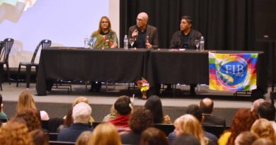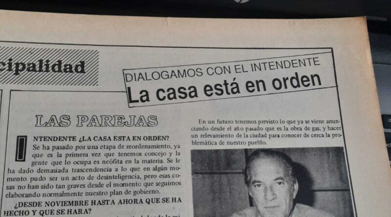 Angel Marconatto fue el primer intendente de la ciudad industrial y quién presidió la inauguración de los servicios esenciales en la comunidad: agua, gas, cloacas. En la foto el «Tola» dialogando con Nuevo Rumbo papel en sus tiempos de mandato. Hoy, 8 de octubre se cumplen 8 años de su desaparición física y recordarlo es una manera de no olvidar su paso como funcionario y ser humano con profundo agradecimiento.-
