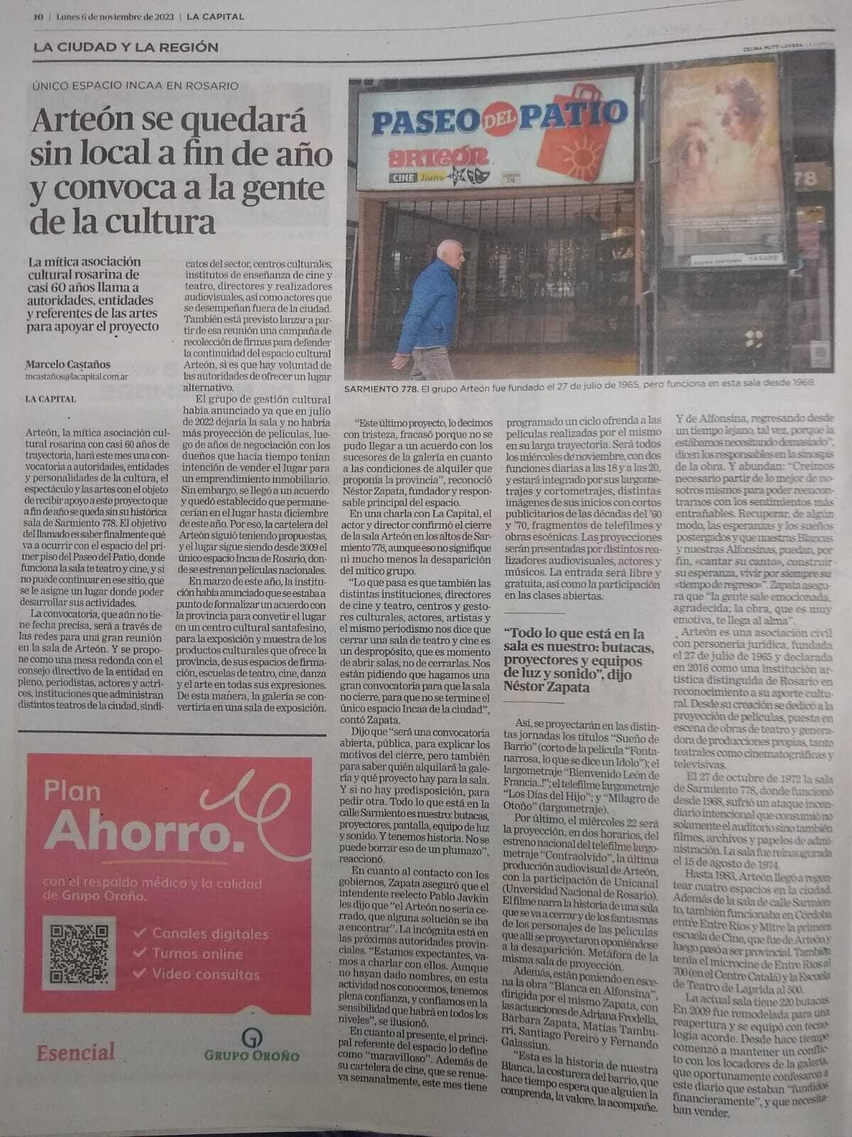 Nuevo Rumbo ARTEÓN, UN ESPACIO MUY NUESTRO QUE LUCHA POR SU PERMANENCIA 11 noviembre, 2023 Raquel Vaschetto