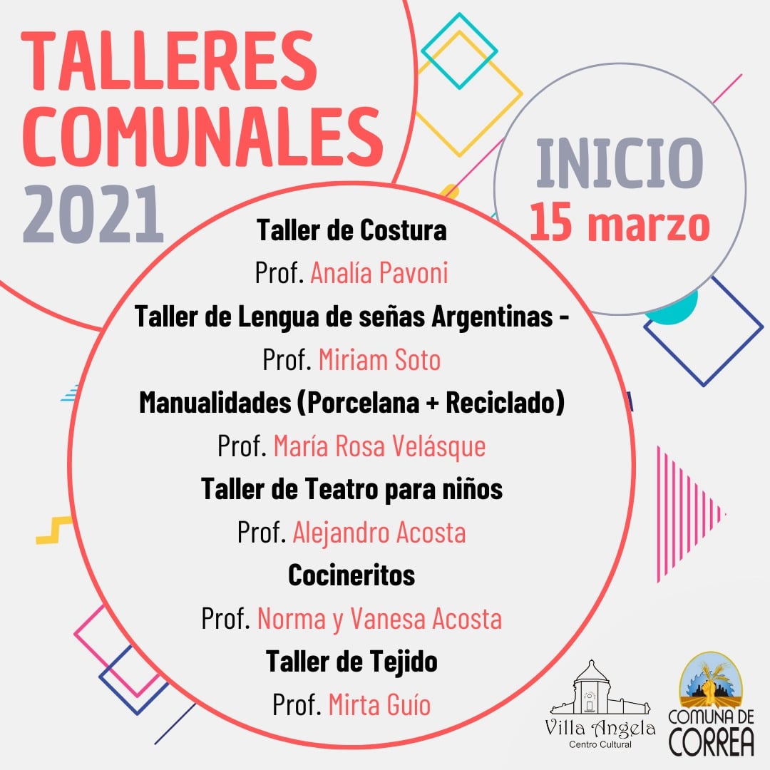 Talleres Comunales 2021. Espacios de capacitación y encuentro totalmente gratuitos para vecinos y vecinas de Correa.