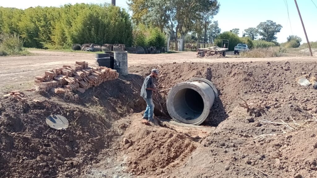 Nuevas alcantarillas de mayor tamaño -en el segundo cuadrado-, en dirección a Roldán, facilitará el drenaje del agua de lluvia tanto de la zona urbana como rural, mejorando las capacidades de las obras hídricas que se realizan en el pueblo.