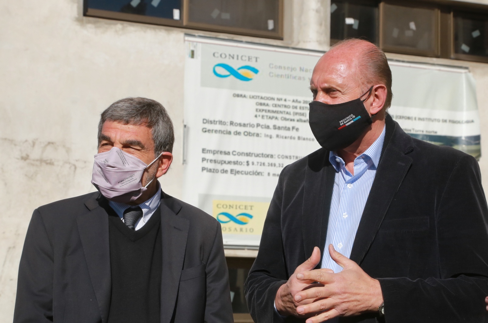 El gobernador Omar Perotti y el ministro de Ciencia, Tecnología e Innovación de la Nación, Roberto Salvarezza, anunciaron importantes inversiones para el sector científico-tecnológico de rosario. Además de recorrer las obras en el Centro Científico Tecnológico CONICET ROSARIO, anunciaron fuertes inversiones para la provincia: la construcción de los edificios del Instituto de Química Rosario (IQUIR), del Centro de Estudios Fotosintéticos y Bioquímicos (CEFOBI) y el Instituto de Fisiología Experimental (IFISE); obras de infraestructura en el predio CONICET de Rosario; la construcción de un ala del edificio INNOVA en UNR. El conjunto de obras, ejecutadas por el gobierno nacional, demandará una inversión superior a los 250 millones de pesos.