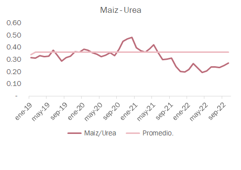 dando en los últimos meses. En la comparación Cultivo vs. Insumo vemos que la