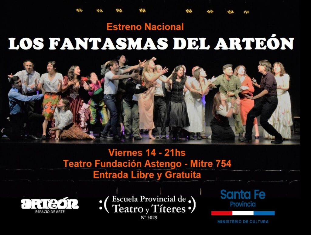 El viernes 14 de octubre, a las 21 horas, estrena a nivel Nacional – con entrada libre y gratuita -, en el Teatro Fundación Astengo, «Los Fantasmas del Arteón», montaje teatral de la 16° Jornada de Poéticas Teatrales, producida por la Escuela Provincial de Teatro y Títeres N° 5029.