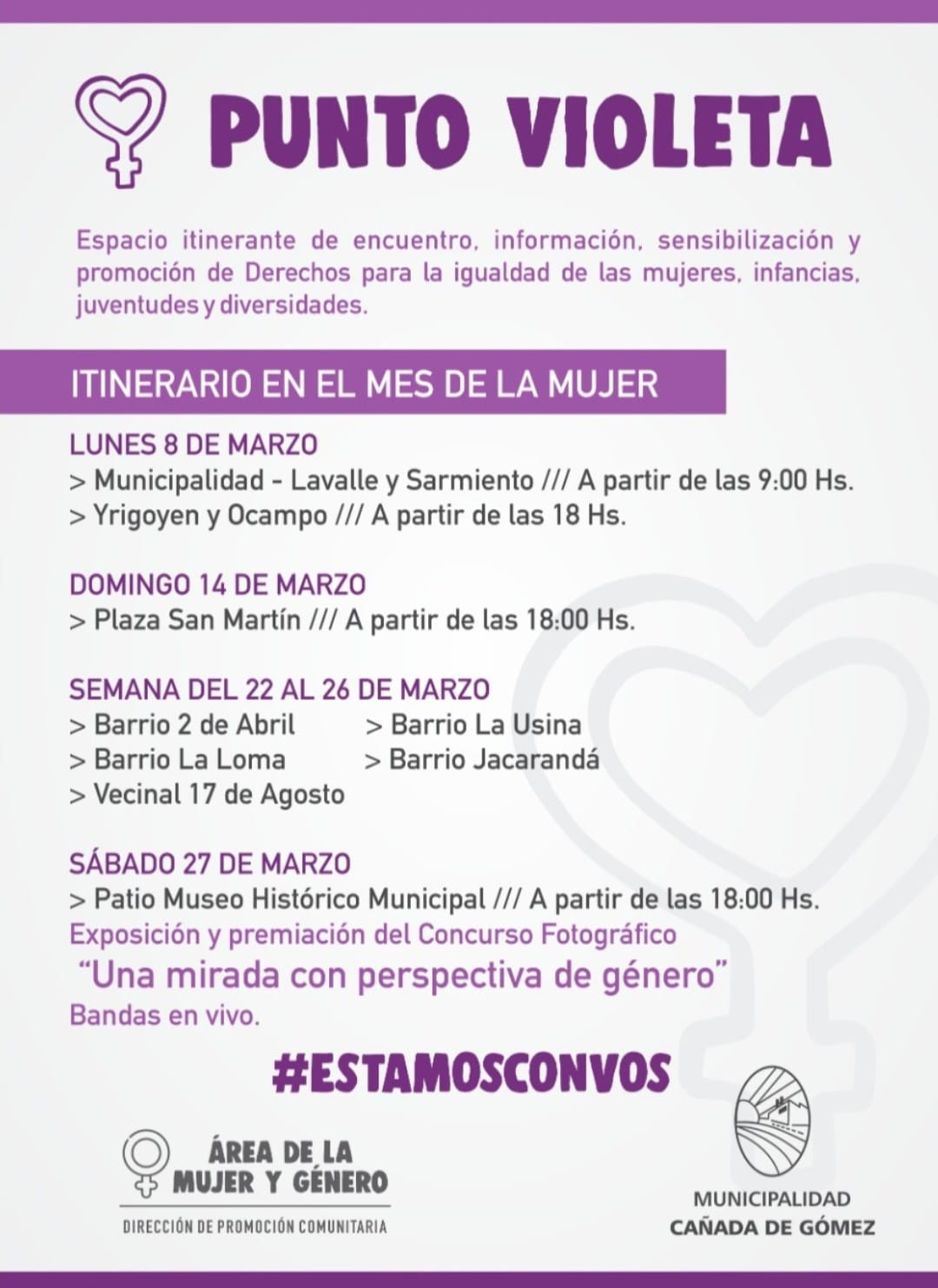 En el Mes de la Mujer contaremos con diferentes actividades itinerantes en todos los barrios de la ciudad. #PuntoVioleta Mirá