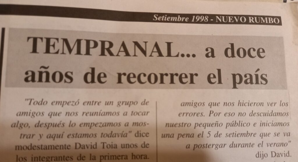 Esta tarde entre otras cosas encontré casualmente una página del diario cuando salía en papel y el contenido trata de una entrevista que nos había hecho en 1998 en ocasión de cumplir 12 años nuestro grupo Tempranal, en aquéllos tiempos tan caros a nuestros sentimientos..