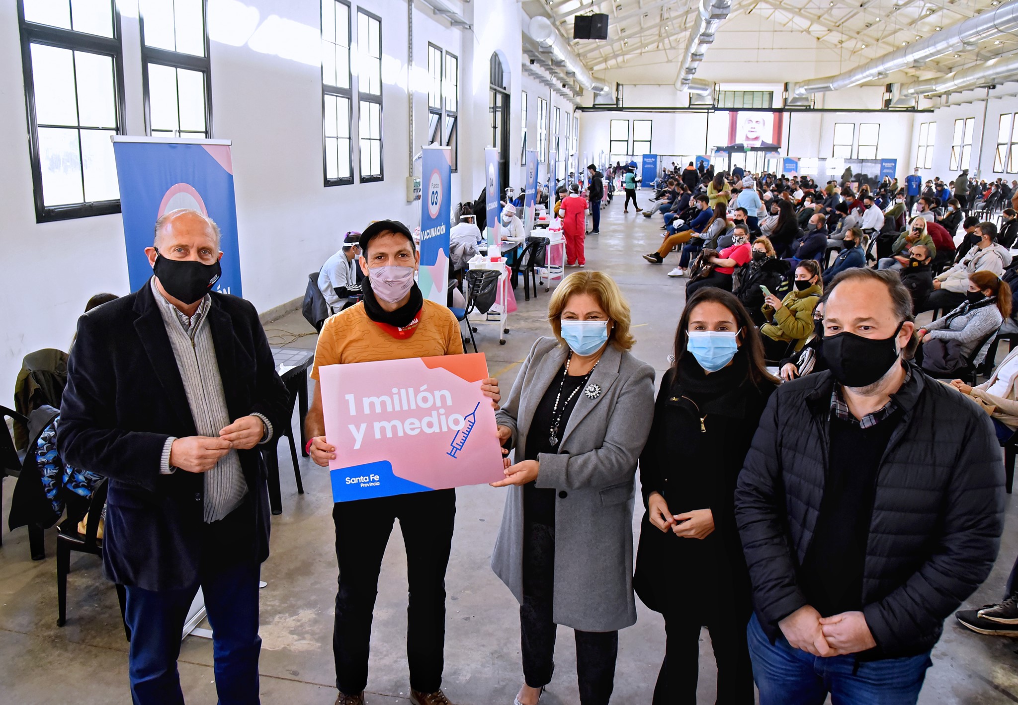 El gobernador de Santa Fe, Omar Perotti, recorrió el predio de la ex Rural en la ciudad de Rosario donde este martes se llegó al millón y medio de santafesinos vacunados. “Llegar a un millón y medio de santafesinos y santafesinas vacunados es un número más que importante” afirmó,-